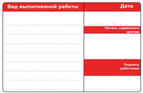 Операции обслуживания, выполненные нашим квалифицированным специалистом, отмечаются на талонах печатью, подписью, датой выполнения, числом рабочих часов.
