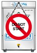 Примените обычную для этих случаев табличку: "ПРОВОДЯТСЯ РАБОТЫ", прикрепленную на всех сторонах компрессора.